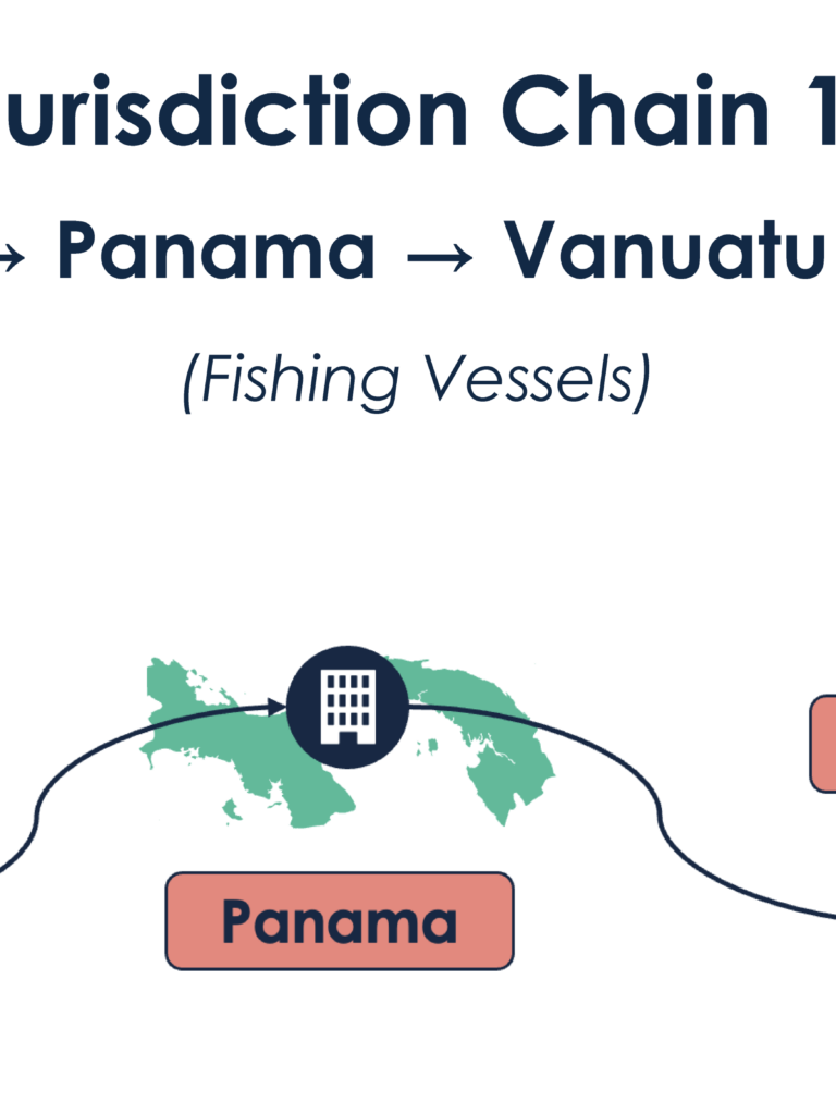 The consequences span maritime industries. Opaque ownership chains enable illegal, unreported, and unregulated (IUU) fishing, forced labor, and sanctions evasion at sea. C4ADS has examined such networks in reports including Sea Shells and Oil and Water. Below, we highlight three ownership and flagging patterns currently in use on the high seas. Each jurisdiction chain is linked to vessels with demonstrated risk factors in their respective industries, and each illustrates the international loopholes that vessel owners may use to pursue illicit activities.